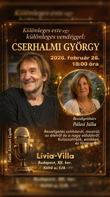A helyszínen megvásárolható és a beszélgetés után dedikálható,, a tavaly megjelent Csáki Judit: " Cserhalmi: - Nem lehet mindennap meghalni" című nagy sikerű könyve