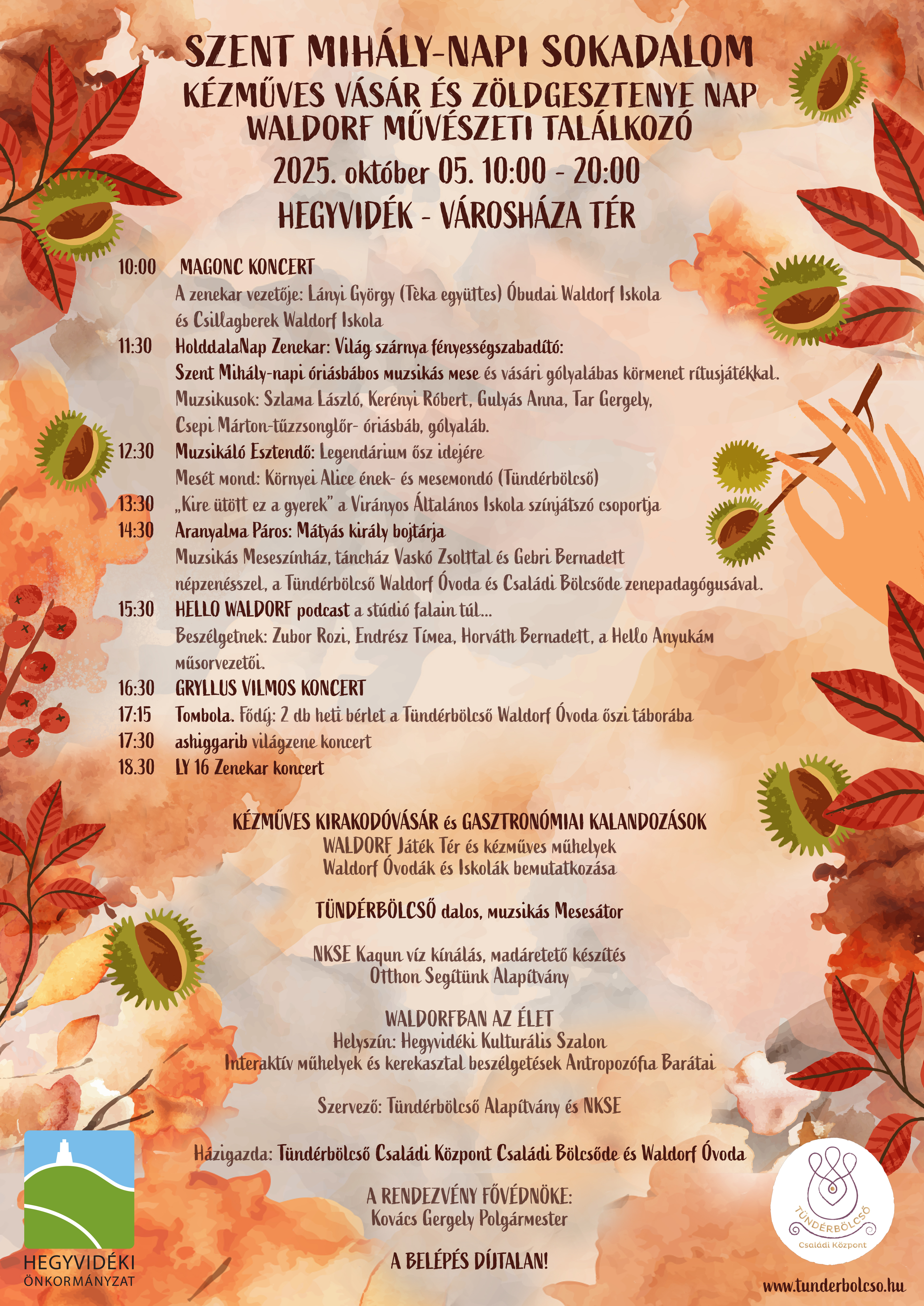 Szeretettel várunk mindenkit október 5-én, vasárnap egy egésznapos családi ünnepre, a SzentMihàly-napi Sokadalom, kézműves vásár és Waldorf művészeti találkozóra, a Városháza térre!